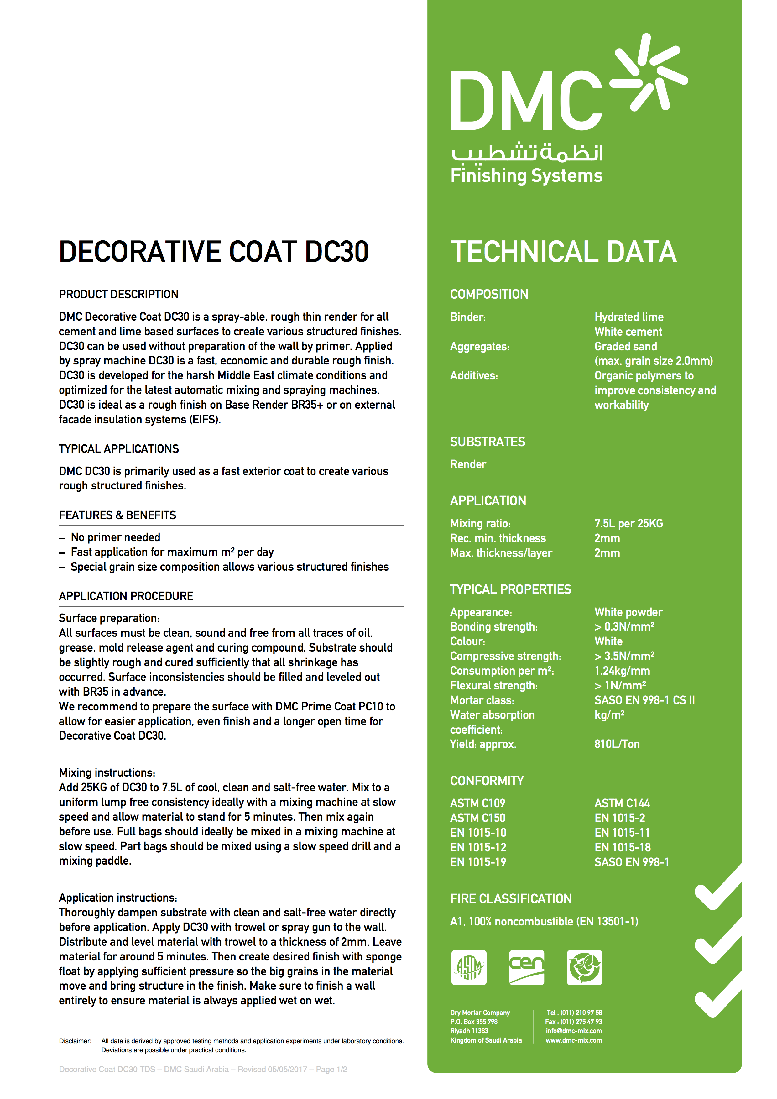 DMC Decorative Coat DC30 is a sprayable, rough thin render used to create various structured finishes on all cement and lime based surfaces