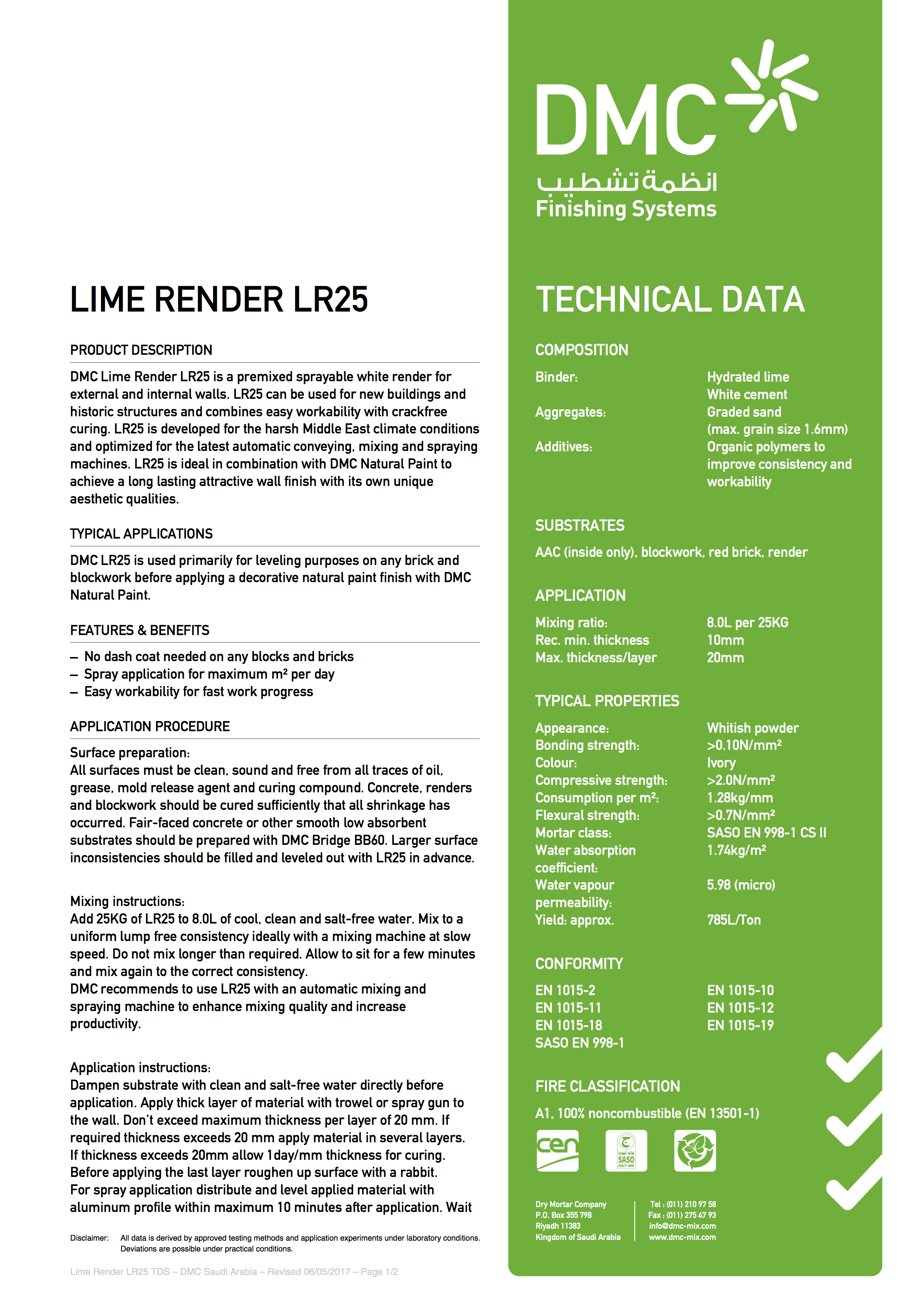 DMC Lime Render LR25 is a premixed sprayable white render for internal and external walls, also suitable for historic and mud brick walls